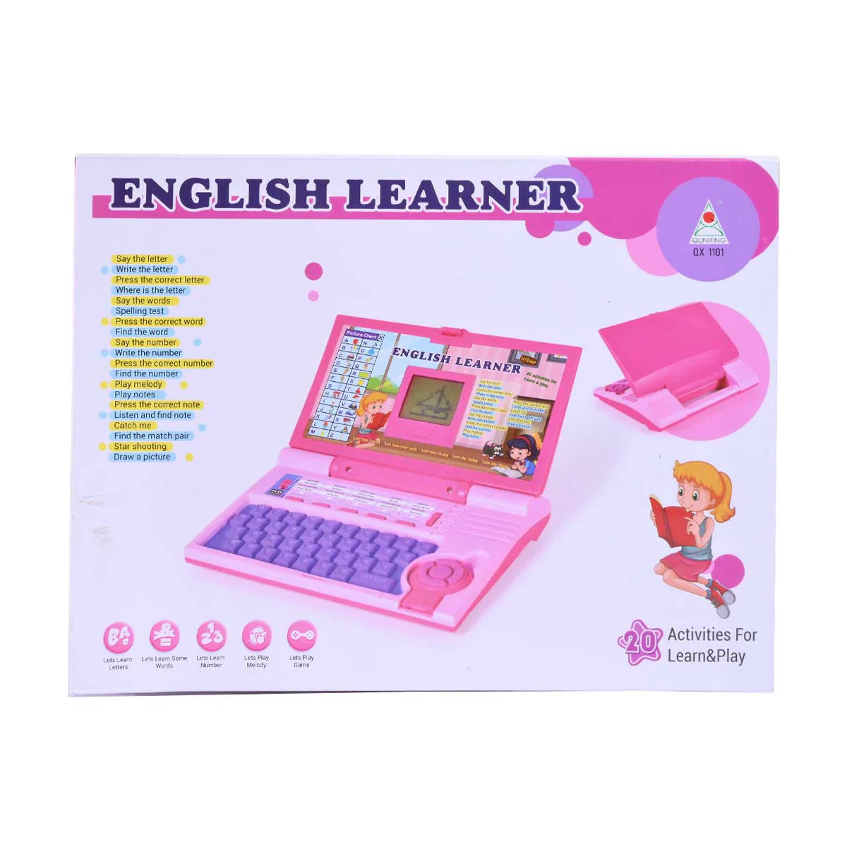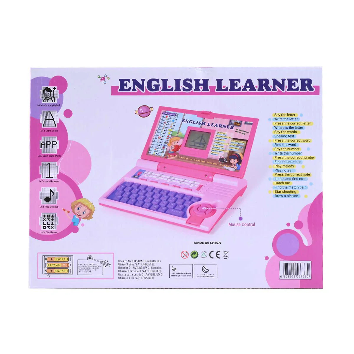 Make learning English fun and engaging with the English Learner Laptop! This interactive toy laptop features 20 different activities designed to help children develop their language skills. From letter recognition and spelling to number learning and musical notes, this laptop offers a variety of educational games and exercises. With its colorful design and user-friendly interface, the English Learner Laptop makes learning enjoyable and accessible. Perfect for young learners, this toy laptop is a great way to introduce children to the English language and foster a love for learning.