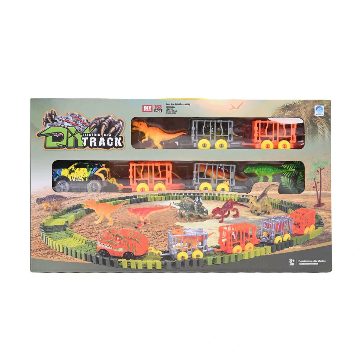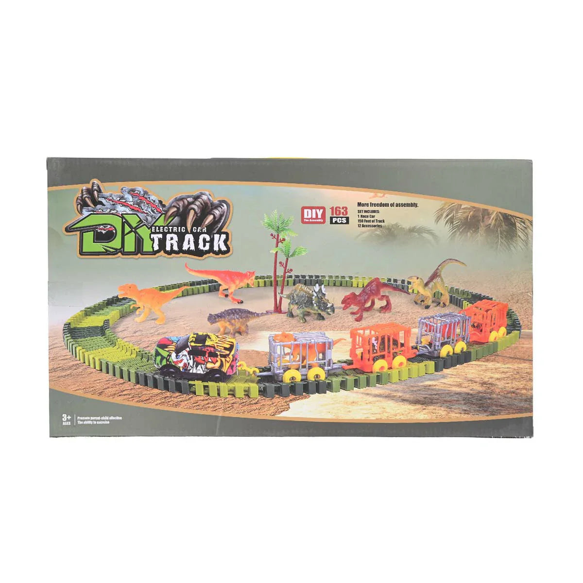 DIY Electric Car Track: 163-Piece Dinosaur Adventure Set