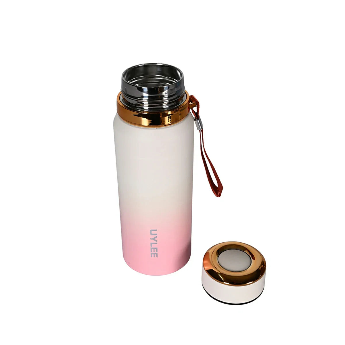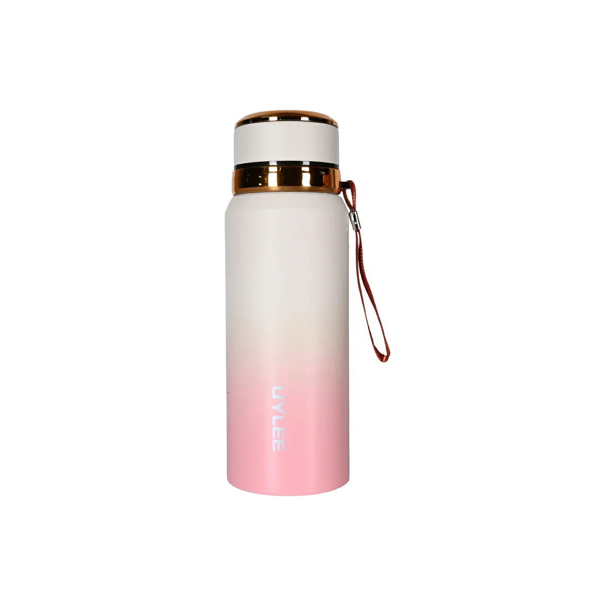 Stylish Pink & White Ombre Insulated Water Bottle with Gold Accents 800ml