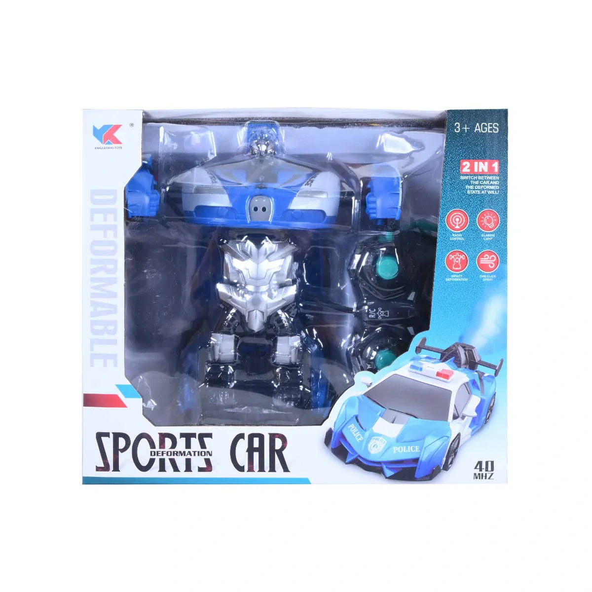 2-in-1 Remote Control Police Car Toy Rotation Deformation Robot Car With Light