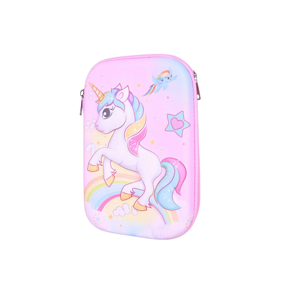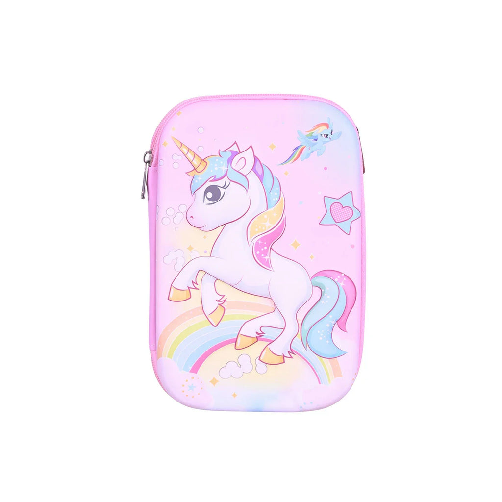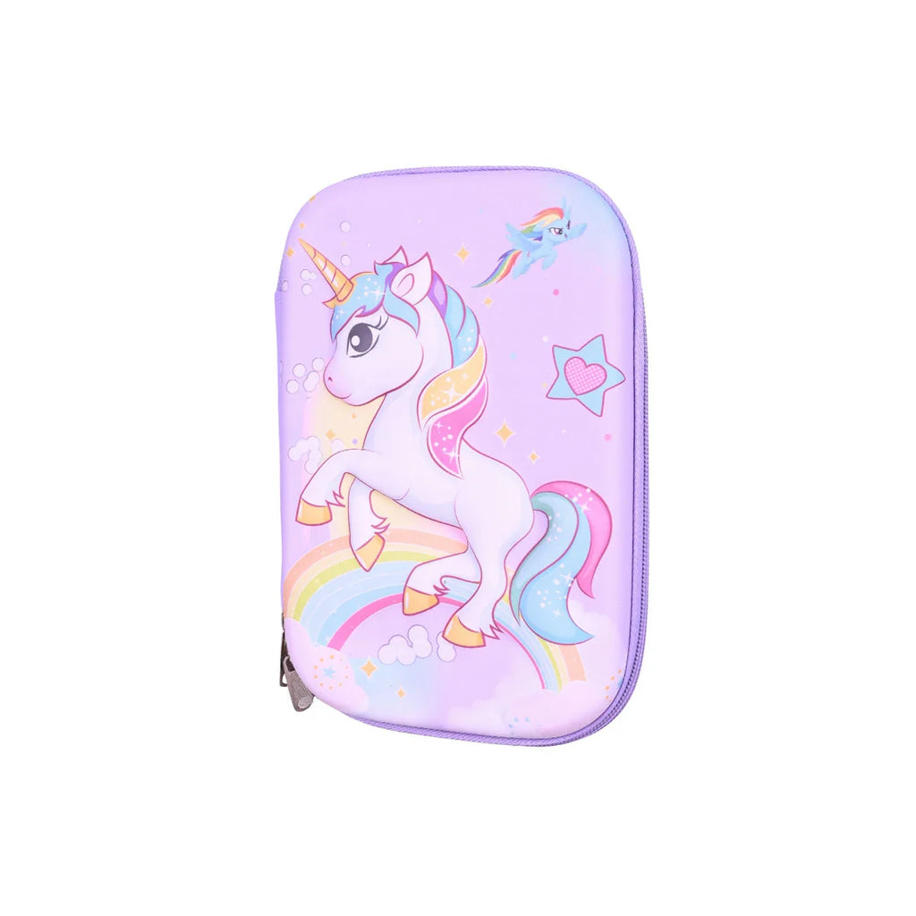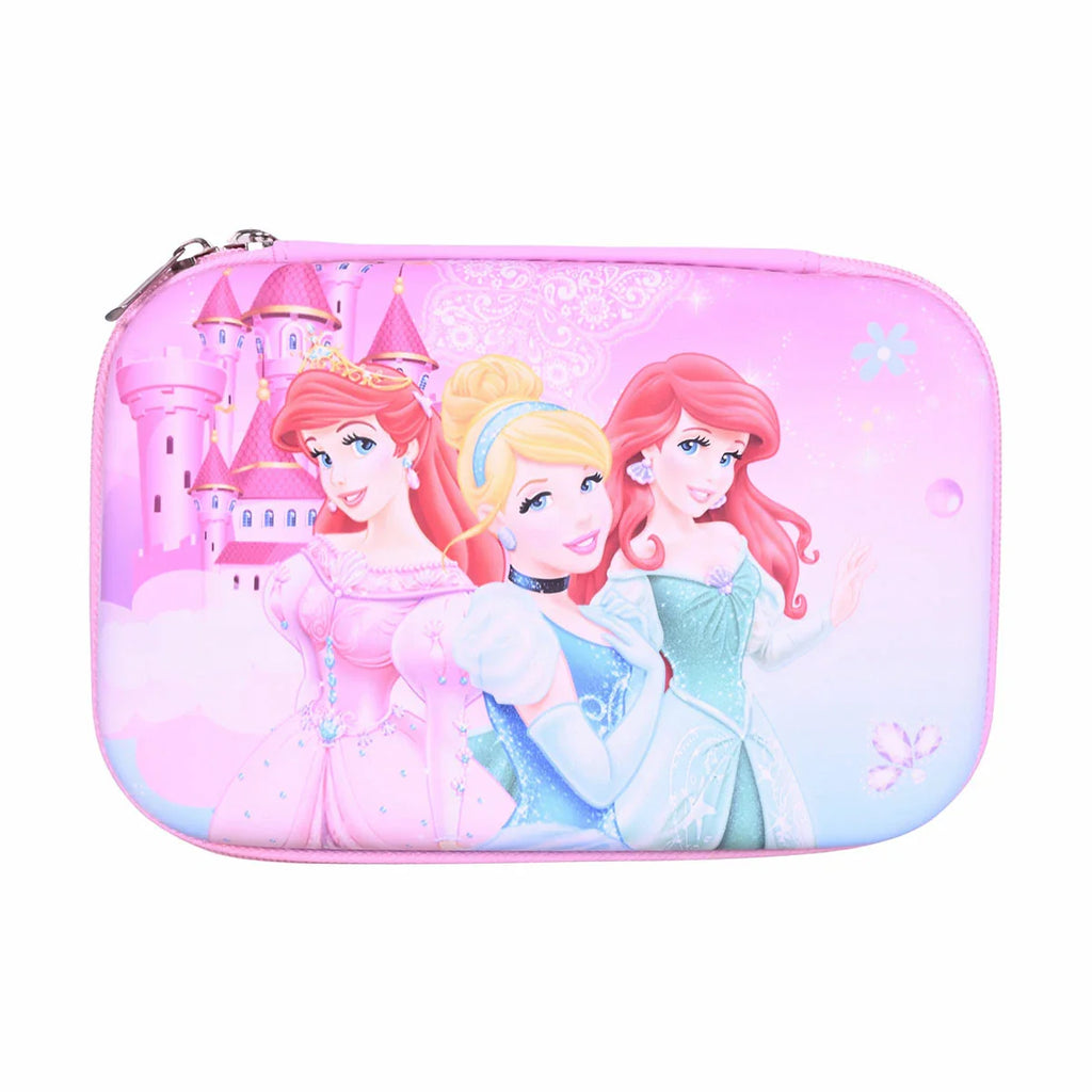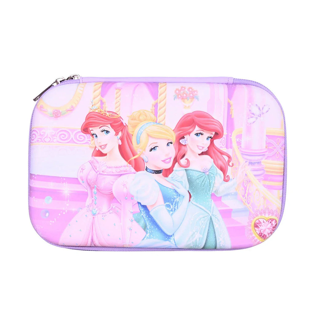 The pencil cases are available for both boys and girls. The girls can get a pencil case with hello kitty on it in pink and sea green color. A princess sofia case in purple color.