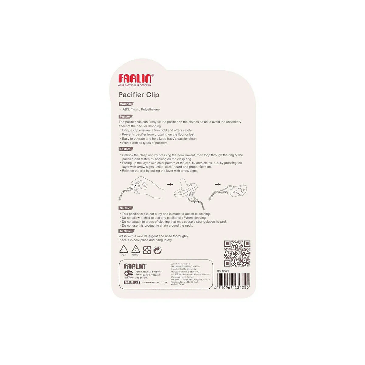 Farlin Doctor J. Pacifier Clip 0m+