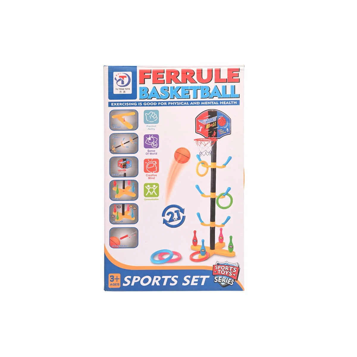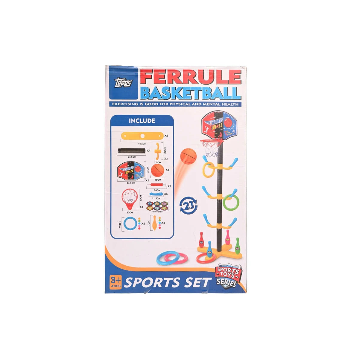 2-in-1 Ferrule Ring Toss & Basketball Sports Set for Kids