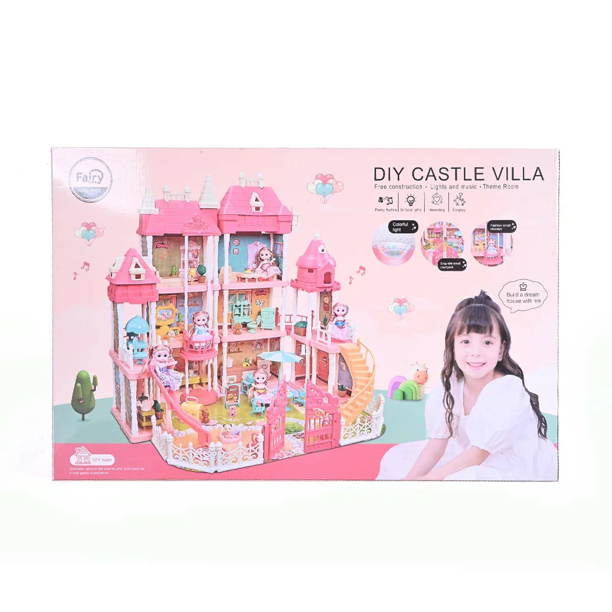 DIY Castle Villa Dream House Playset with Lights and Music