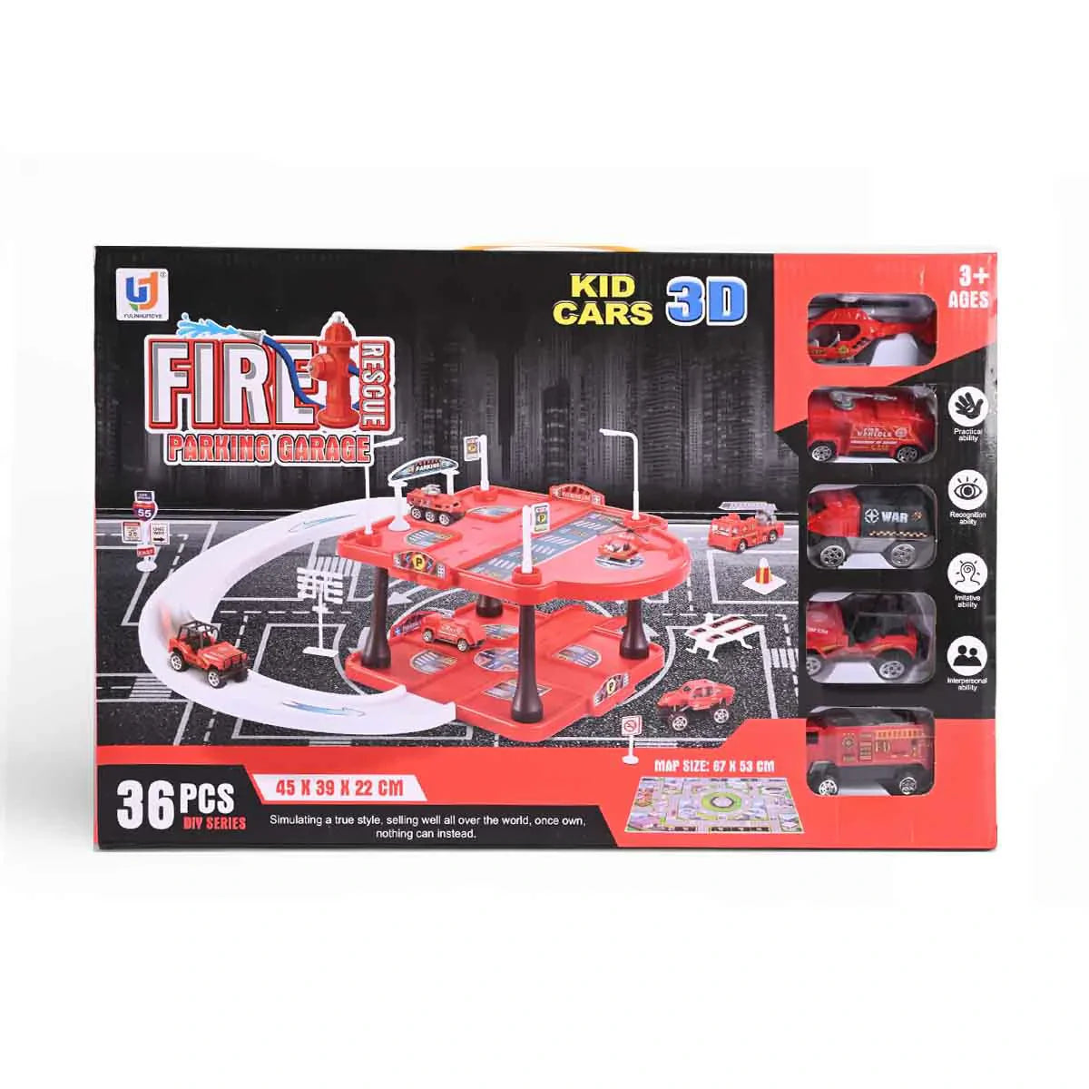 Fire Rescue Parking Garage: 36 Piece 3D DIY Playset