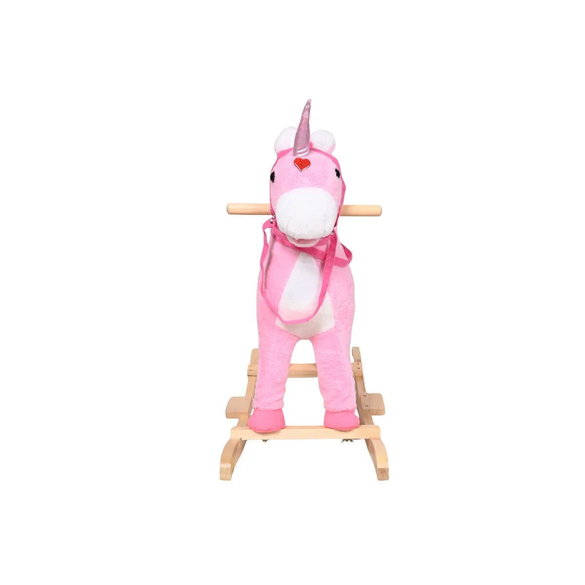 Pink Plush Unicorn Rocking Horse Toy - Wooden Base Fantasy Rocker