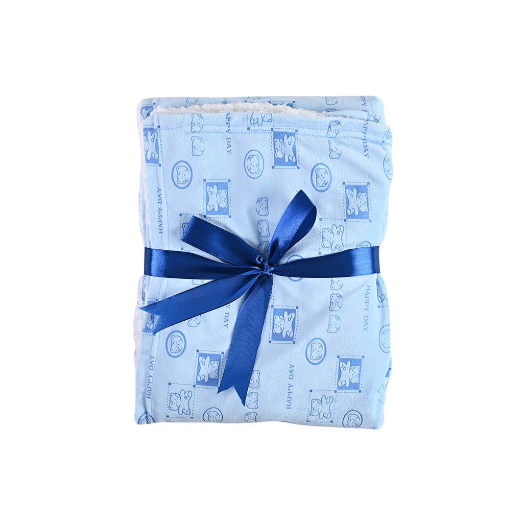 Picture of Baby Blue Plush Blanket with Cartoon Lamb Print - by Raja Sahib Kids