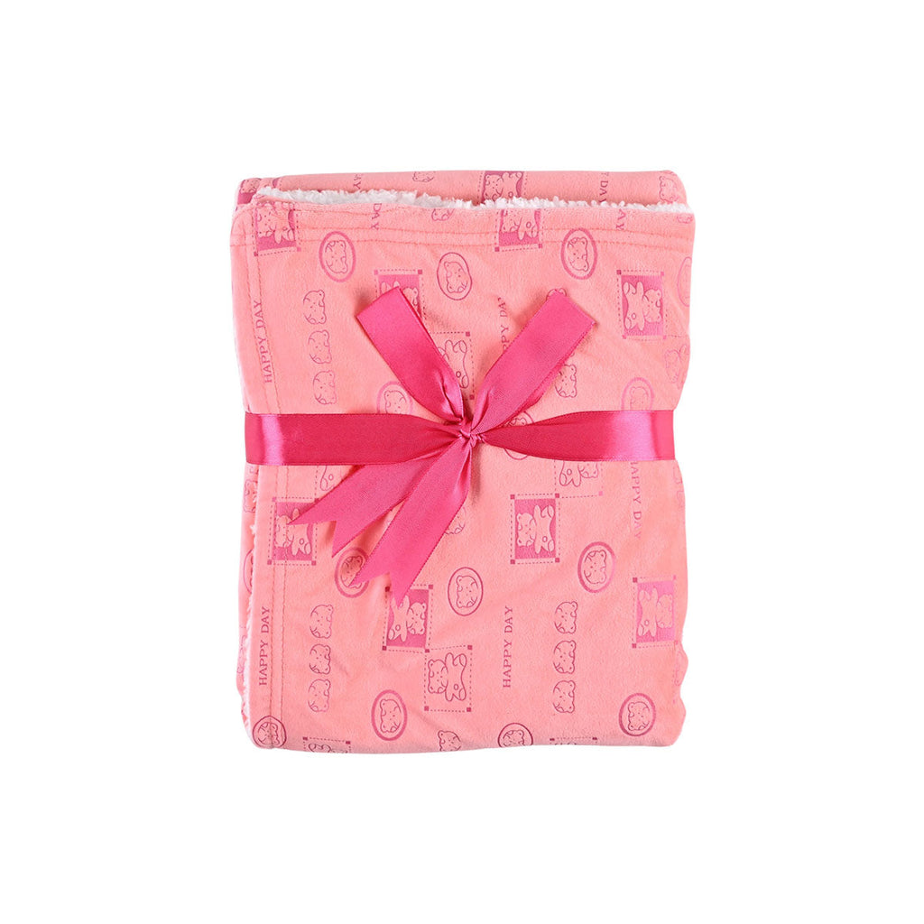 Picture of Peach/Rose-Toned Plush Blanket with Character & Planets Print - by Raja Sahib Kids