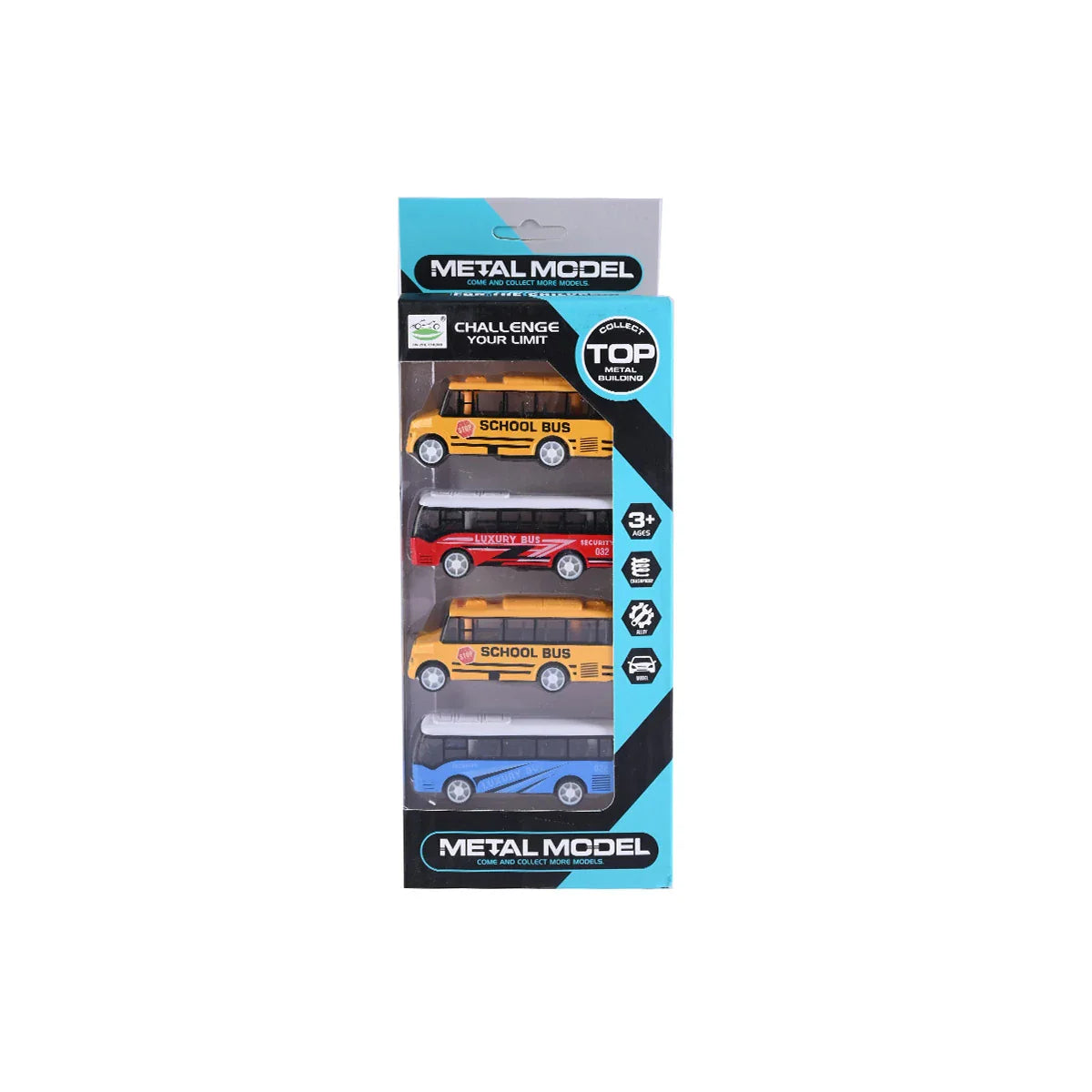4-Piece Metal Model Bus Set - School & Luxury Bus Collection