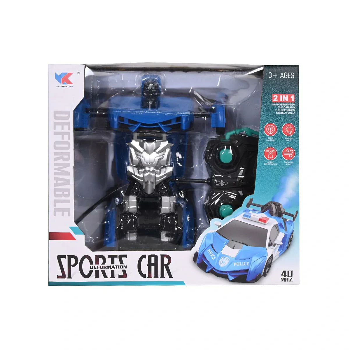 2-in-1 Remote Control Police Car Toy Rotation Deformation Robot Car With Light