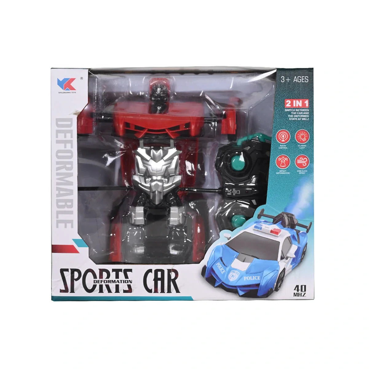 2-in-1 Remote Control Police Car Toy Rotation Deformation Robot Car With Light