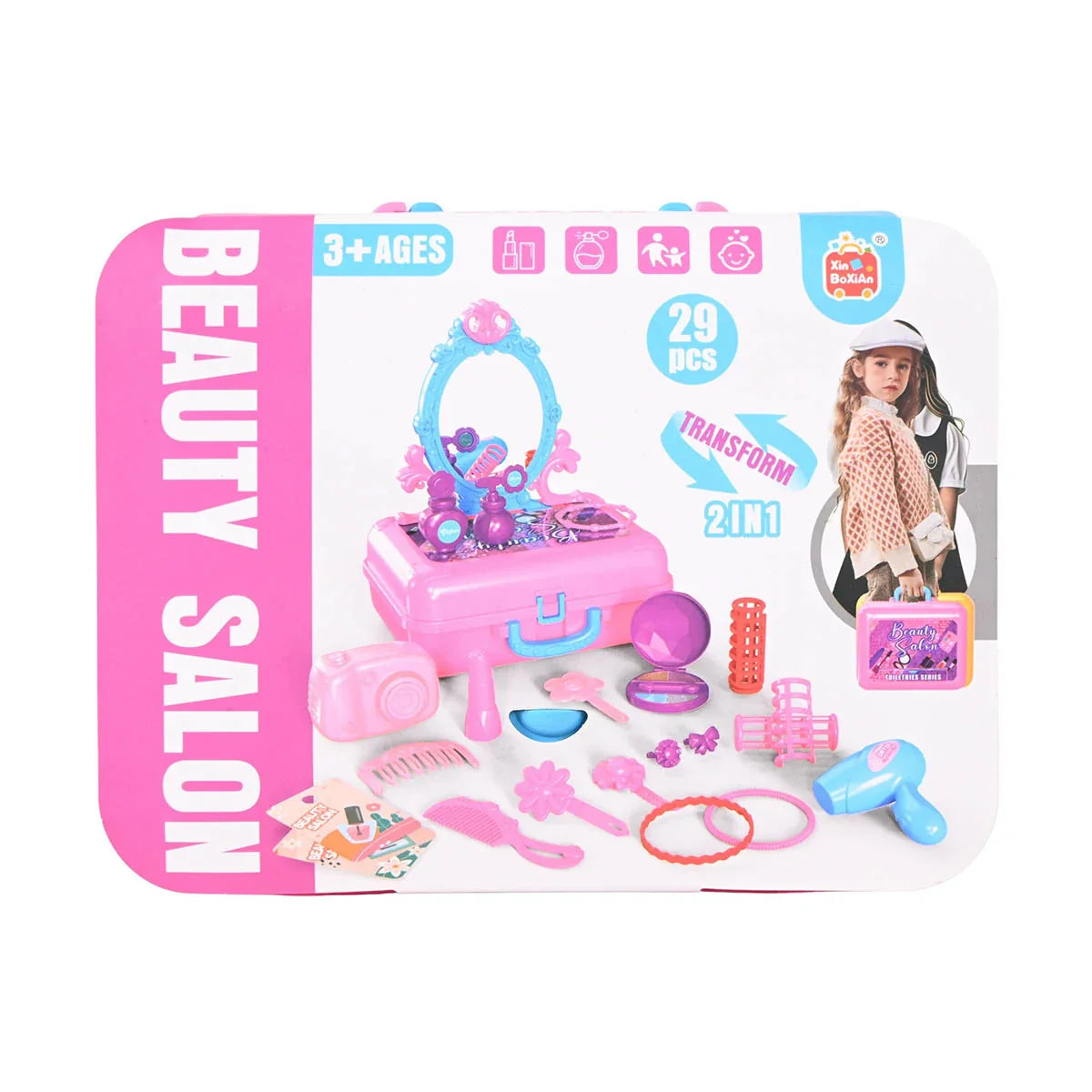 Beauty Salon 2-in-1 Transformable Toy Set | 29-Piece Portable Vanity Case | Interactive Beauty Role-Play Kit for Ages 3+