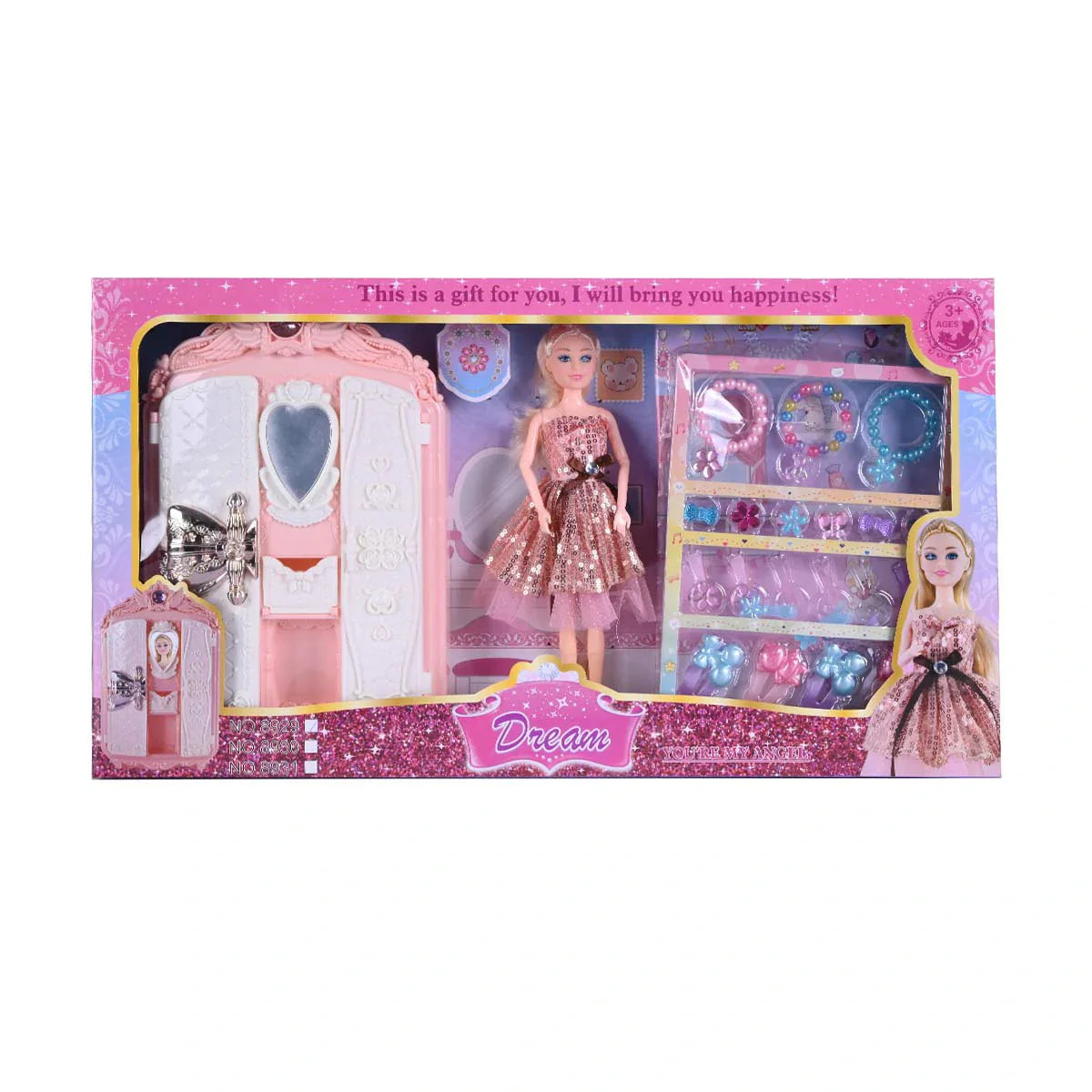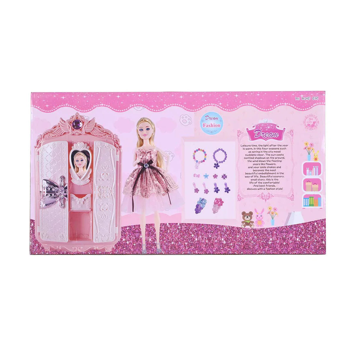 Let your imagination sparkle with the Dream Doll with Wardrobe and Accessories Play Set! This enchanting set includes a beautiful fashion doll dressed in a dazzling gown. To complete her glamorous look, the set also features a stylish wardrobe with opening doors and a variety of accessories like jewelry and shoes. This play set encourages creative storytelling and allows children to explore fashion and styling with their very own Dream Doll.