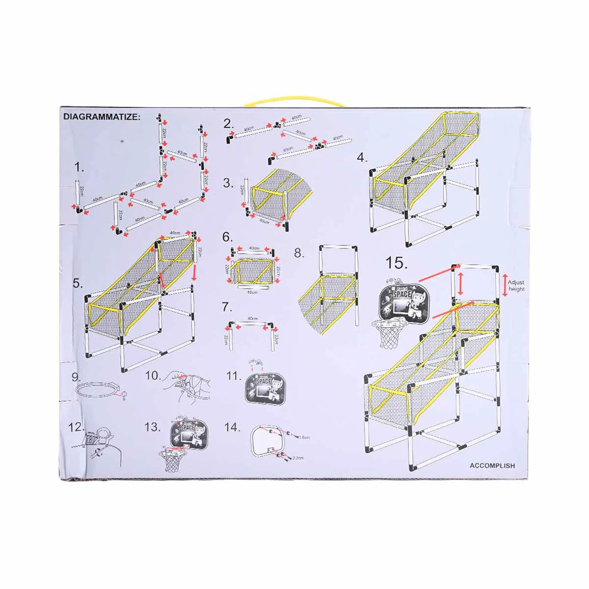 The set includes the main basketball structure with a durable Backboard and an automatic ball return ramp, ensuring continuous, fast-paced action. Built for reliable home use, the structure measures 127cm in height, with a 91cm depth for the ball return, and the easy-to-follow "DIAGRAMMATIZE" assembly guide details all component sizes. A crucial feature for growing children is the ability to "Adjust height" on the fly, extending the toy's lifespan and ensuring it remains a fun and challenging game as your child develops coordination, motor skills, and concentration.