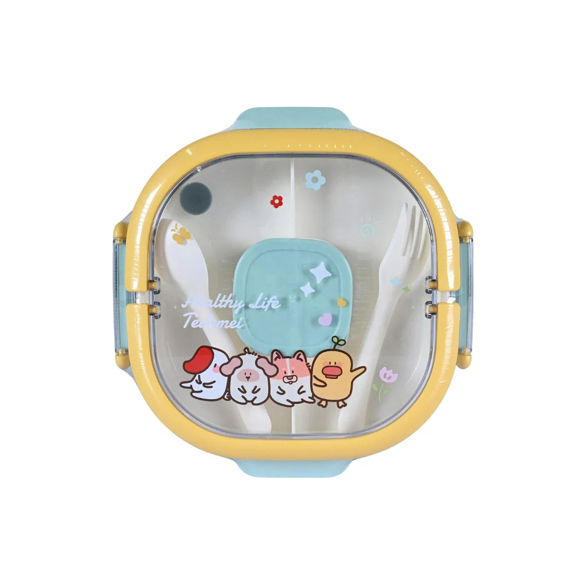 Kids' "Healthy Life" Cute Animals Lunch Box with Fork & Spoon