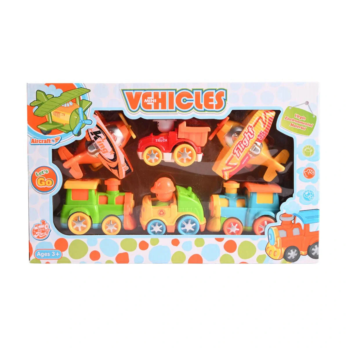 Mini Vehicles Speed Challenge Playset - Aircraft, Train, & Truck Collection (6-Piece Set)
