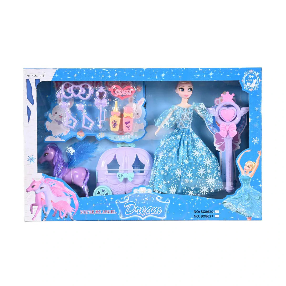 Princess Doll With Magical Accessories Ice Queen Theme Horse & Carriage And Wand