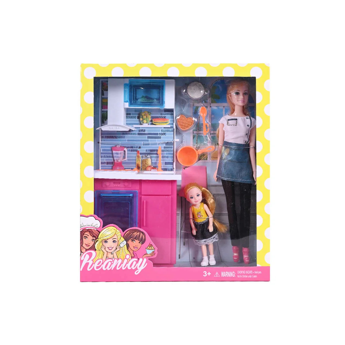 Reaniay Doll Set And Baby Doll With Modular Kitchen Set