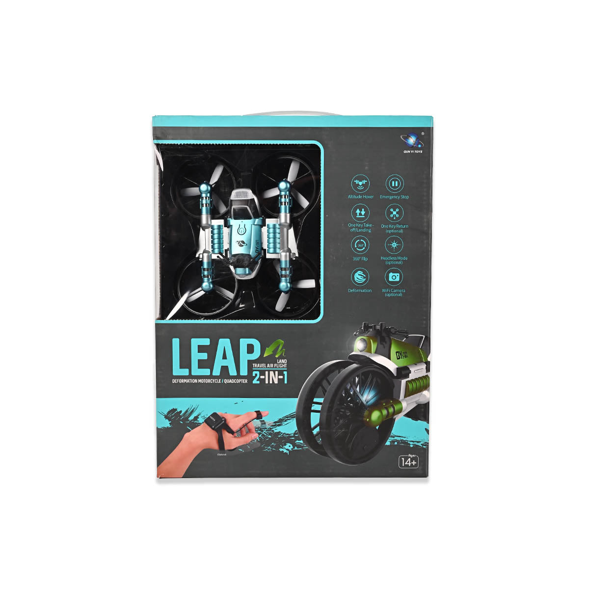 Remote Control 2-in-1 Leap Deformation Motorcycle & Quadcopter Drone-Blue
