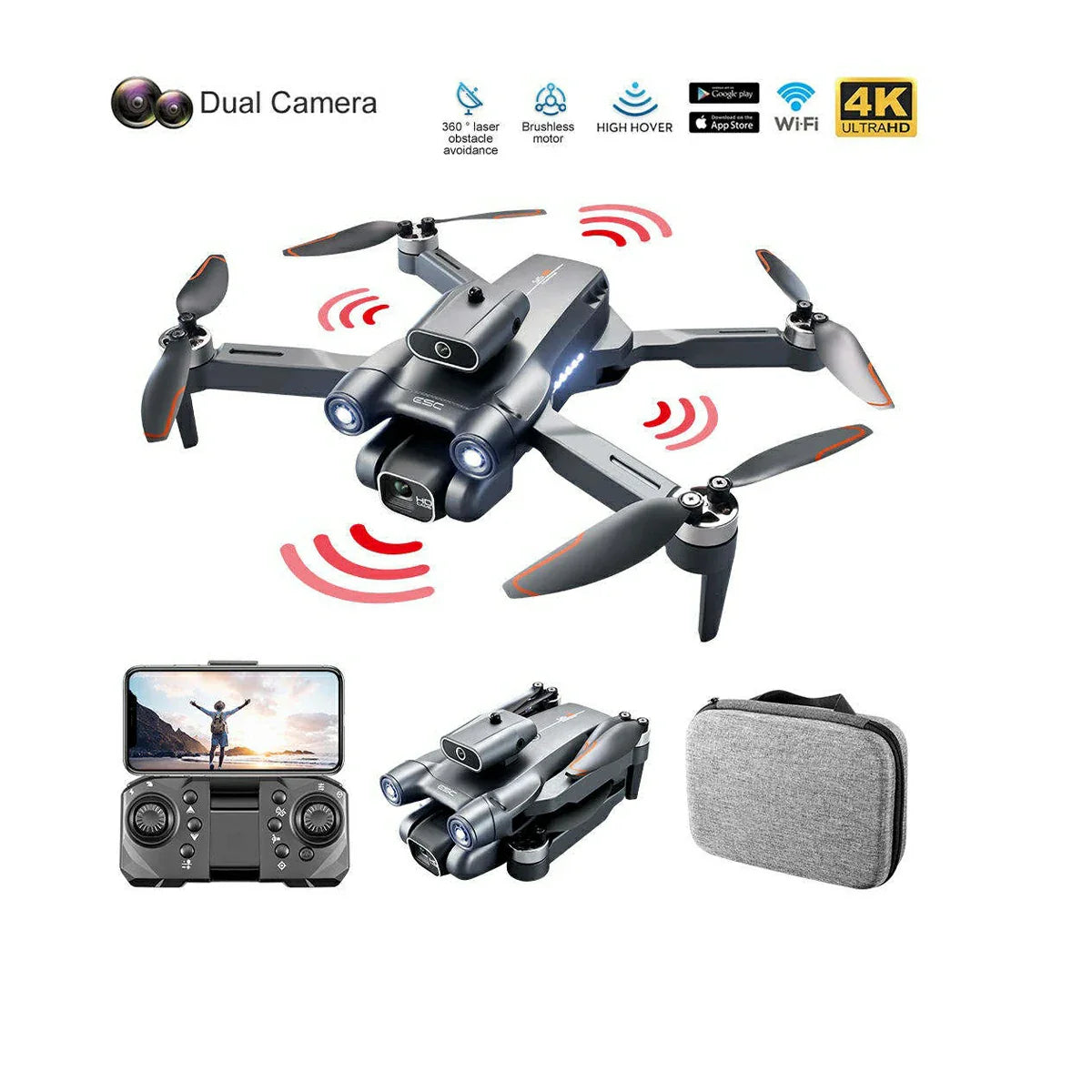 1. The front lens is equipped with wide-angle 4K HD WiFi, the bottom Hd 1080p is equipped with optical flow, the camera angle can
